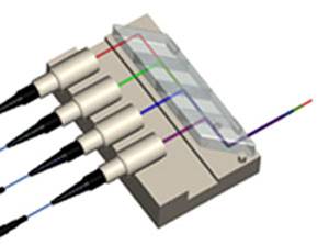 標準的組合器由DPSS和405、488、561和640nm二極管激光,以及一個聲光調控器組成。