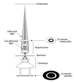(1)環形光闌(annular diaphragm)位于光源與聚光器之間,作用是使透過聚光器的光線形成空心光錐,焦聚到標本上。