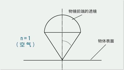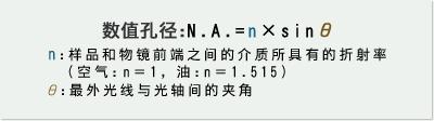 數值孔徑又叫鏡口率,簡寫為NA。它是由物體與物鏡間媒質的折射率(n)與物鏡孔徑角的一半(θ\2)的正弦值的乘積,其大小由下式決定:NA=n×sinθ/2。