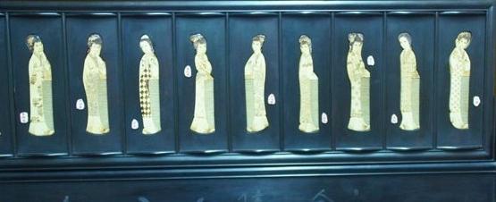 在夫婦倆的工作室,陳列著兩人耗費四年心血的《十八羅漢》聯屏。以名貴紫檀木為底座,由18塊象牙片聯成長1.5米、高0.6米的牙雕聯屏。每塊象牙片上,都有一尊精雕重彩、形態各異的羅漢。