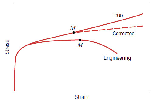 其中的Corrected是指的考慮了頸縮區域復雜應力狀態后作的修正。