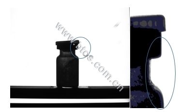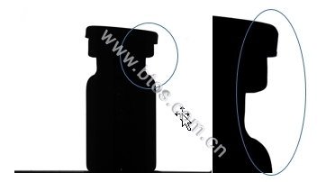 在檢測瓶內液體里的雜質時,瓶體玻璃材質會使得很大一部分液位圖像黑掉,如果其中有雜質的問題就無法檢出。