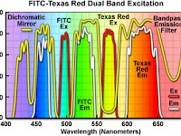 紫外線和尼康FITC-Texas Red濾光片組合可見光透射光譜曲線下面示于圖1.該過濾器組被設計用于將信號從異硫氰酸熒光素(FITC)和Texas Red在雙標記實驗中的探針Zui佳檢測,并采用激發濾光器與窄帶通窗口在藍色(490-505nm),綠色(560-580nm)光譜區。
