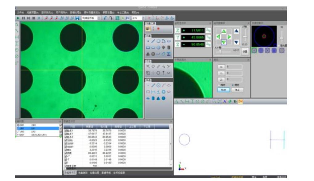 能直接測量12種幾何元素(點、直線、平面、圓、圓弧、橢圓、鍵槽、圓柱、圓錐、球、距離、角度)。所測元素類型較多。